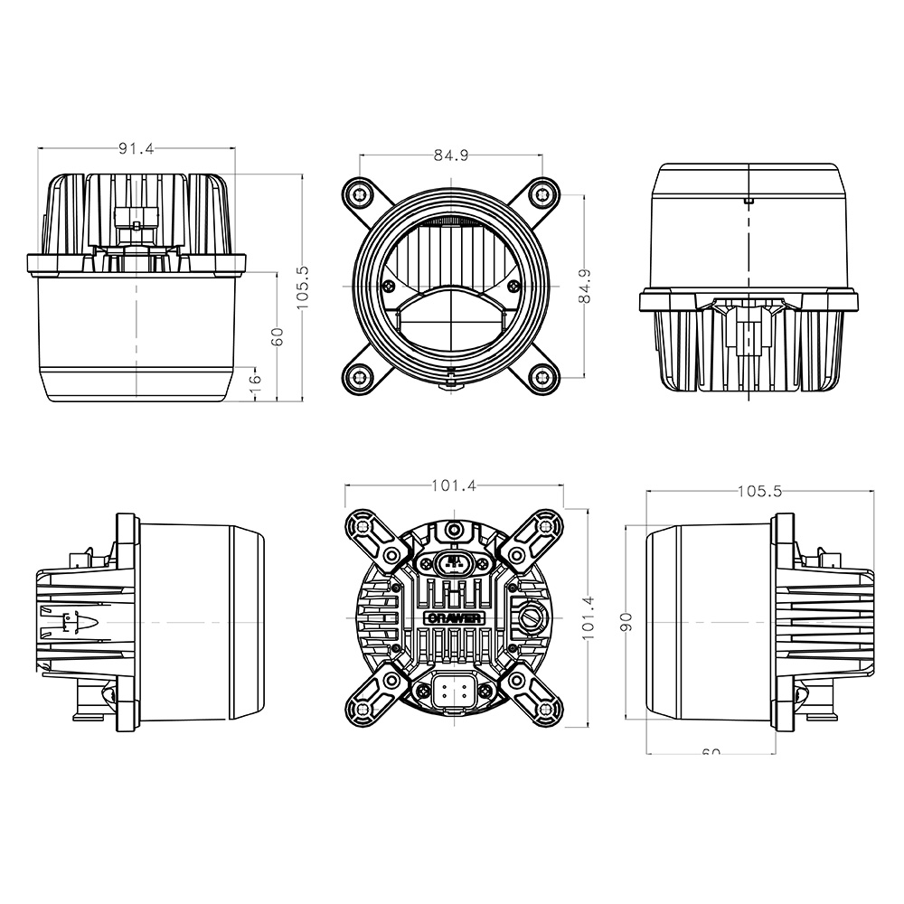 - Maße: Breite 101,4, Höhe 101,4mm, Tiefe 105,5mm